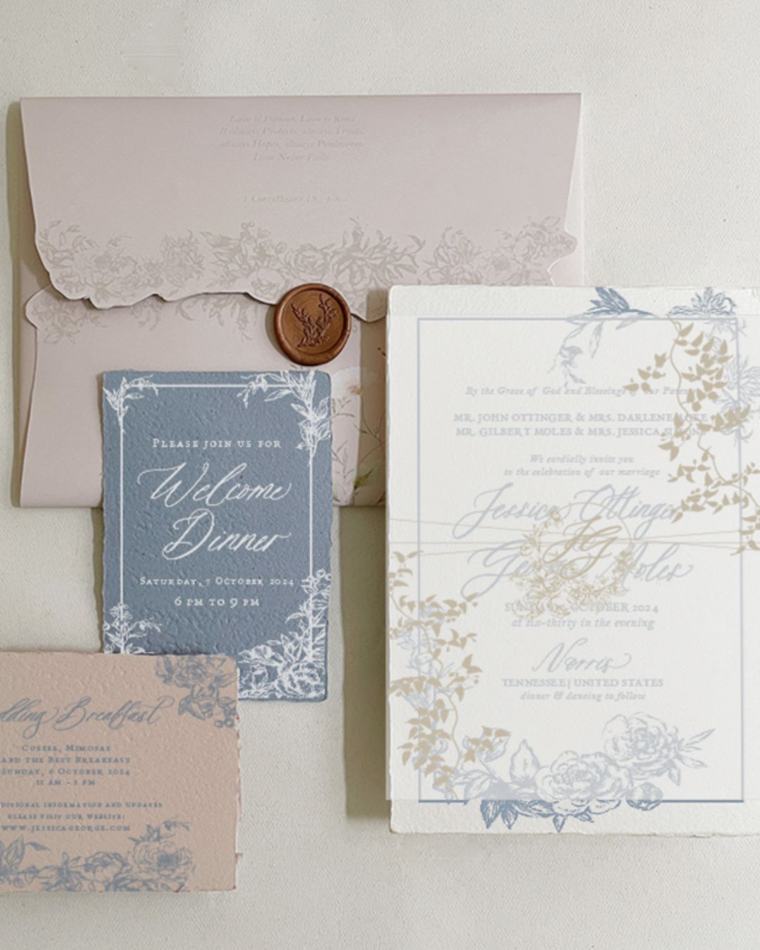 Meilifluous has 3 timeless designs of Semi-Custom Invitation with customizable colors to give your guests a glimpse of your wedding day. Our Collection of Semi-Custom Wedding Invitations offer you our signature design style with fully customisable colours, card options & unique calligraphy styles — creating warm, personal and timeless invitations (or heirlooms, as we consider them), to be adored well beyond your special day.